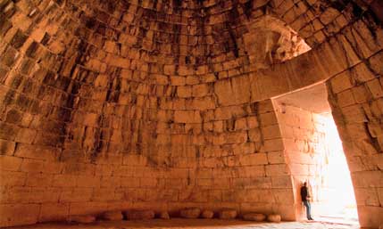During the second millennium BC Mycenae was a strong city state; it had a sophisticated culture and the Mycenaeans were so influential that the period of Greek civilisation between about 1750 and 1050 BC was named after them. One of the monuments from the city that still survives to this day is The Treasury of Atreus, sometimes known as the tomb of Agamemnon. in truth it probably has nothing at all to do with either Atreus or Agamemnon; the name was given to it by Heinrich Schliemann, who was obsessed by the Trojan War, and like many of his other claims this has been subjected to a great deal of debate.